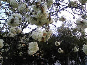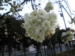 “うこんの桜”です。いまが見ごろです。最初は薄黄緑で白からピンクに変わり散ります。