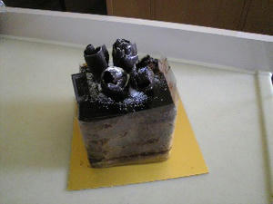 チョコレートでばらが飾られている、チョッピリ大人の味のケーキです。